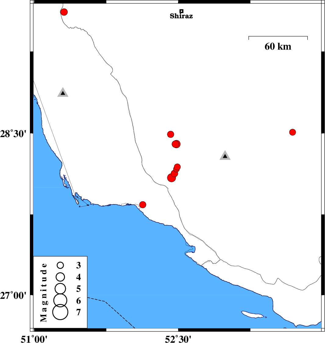 | 2010/06/08 | 10:21:08.4 | 14:51:08.4 | 29.61 | 51.31 | 15 | ML3.3 | Fars Province, 34 km West of Kazerun | ||