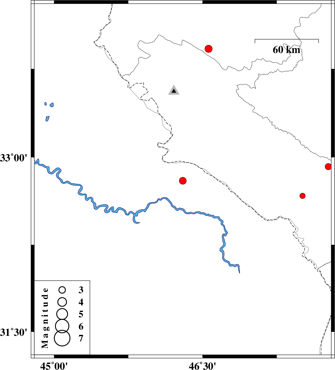 | 2010/07/09 | 14:37:02.9 | 19:07:02.9 | 32.8 | 46.3 | 14 | ML3.2 | Iraq, 37 km South-East of Mehran | ||