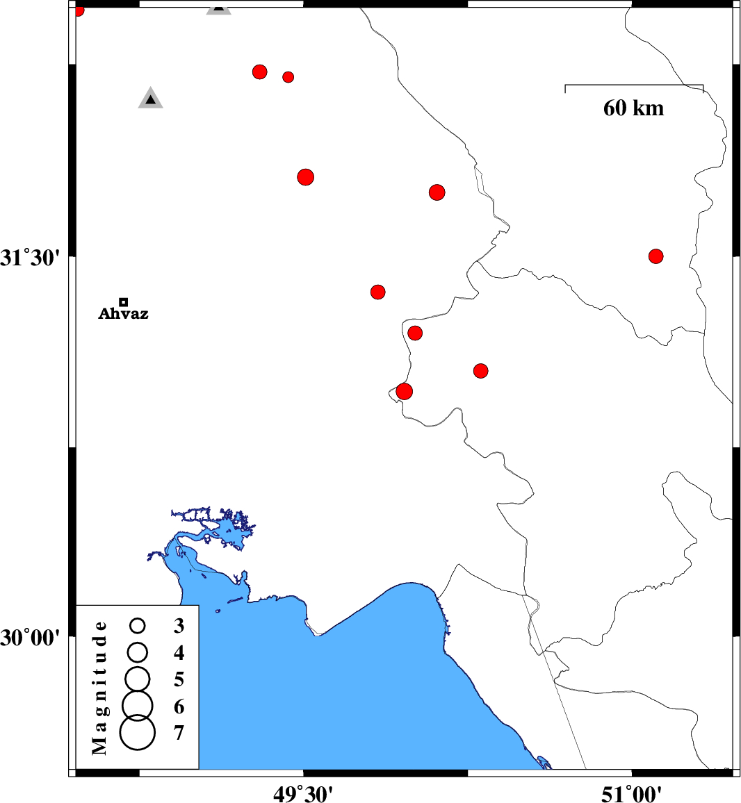 | 2010/07/16 | 14:52:31.9 | 19:22:31.9 | 30.97 | 49.96 | 18 | ML3.4 | Kohkiluieh va boyerahmad Province, 33 km North-East of Omidiyeh | ||