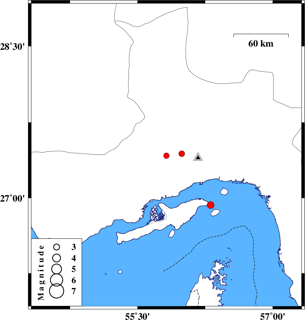 | 2010/07/14 | 14:12:49.4 | 18:42:49.4 | 26.93 | 56.31 | 8 | ML3.5 | Persian Gulf, 5 km Qeshm |