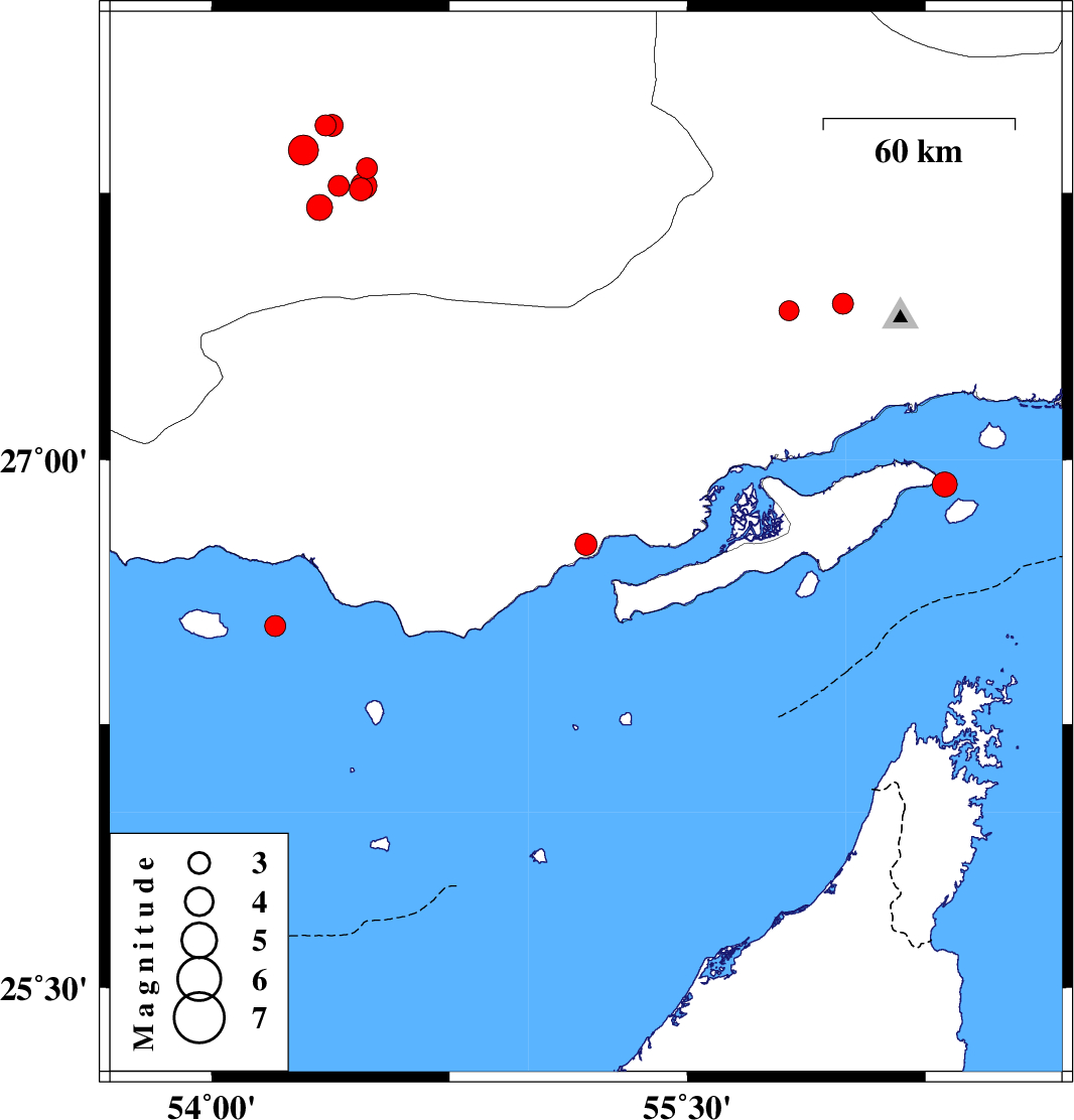 | 2010/06/24 | 10:16:50.3 | 14:46:50.3 | 26.53 | 54.2 | 18 | ML3 | Persian Gulf, 65 km West of Bandar-e lengeh | ||