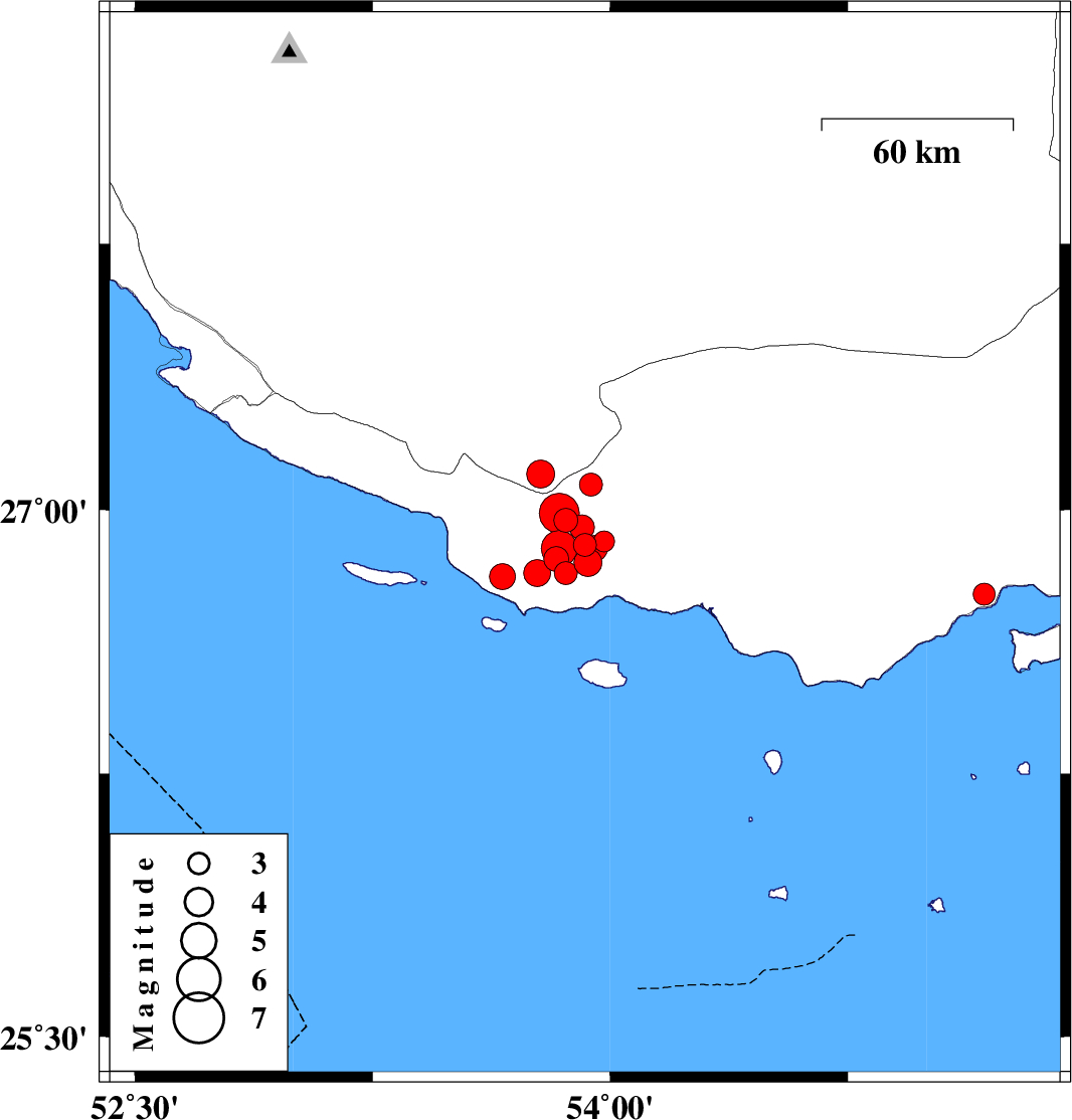 2010/07/21 11:14:28.9 15:44:28.9 26.9153.9814 ML3 Hormozgan Province, 50 km South-West of Bastak
