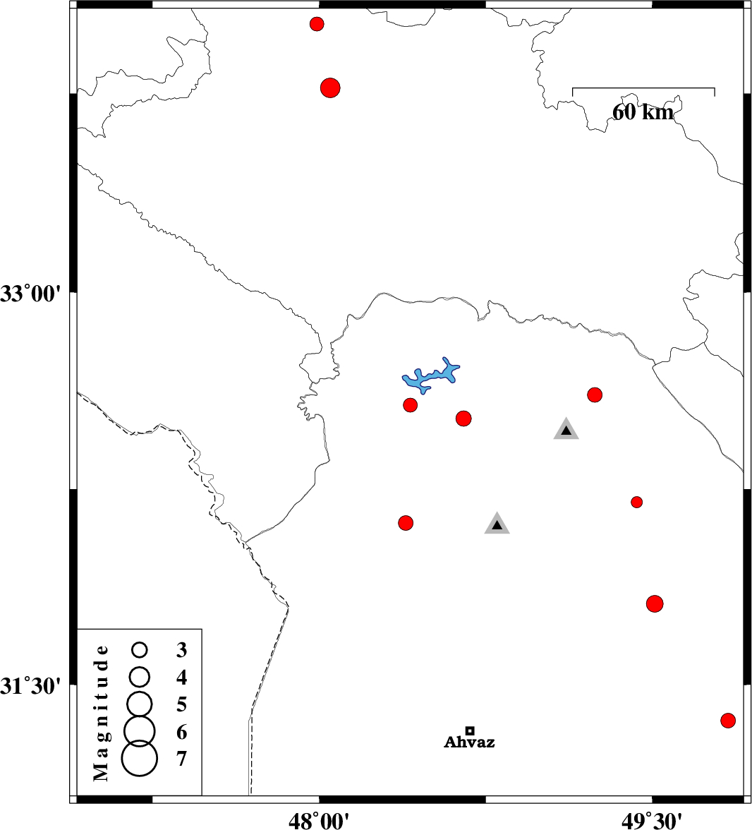 | 2010/07/28 | 11:17:06.2 | 15:47:06.2 | 32.57 | 48.41 | 18 | ML2.8 | Khoozestan Province, 13 km North of Andimeshk | ||
