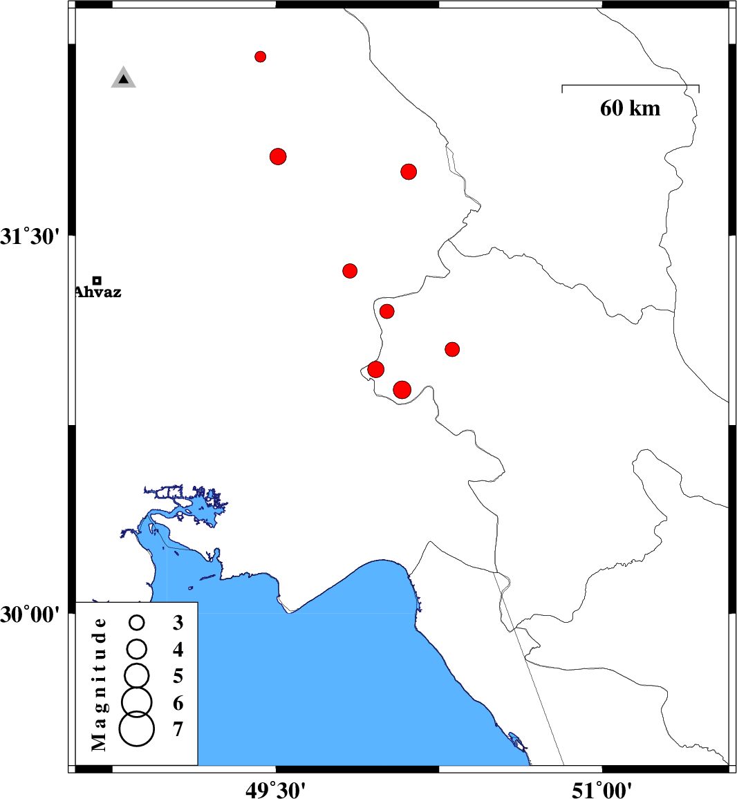 | 2010/07/04 | 06:44:42.5 | 11:14:42.5 | 31.36 | 49.84 | 14 | ML2.9 | Khoozestan Province, 19 km South of Bagh Malek | ||