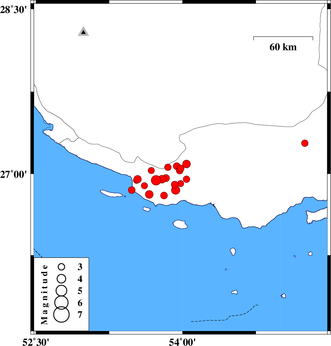 2010/07/24 14:31:35.8 19:01:35.8 26.9453.5340 ML3 Hormozgan Province, 57 km South-East of Lamerd