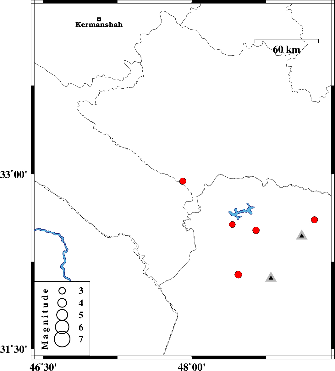 | 2010/07/30 | 17:16:24.8 | 21:46:24.8 | 32.94 | 47.91 | 46 | ML2.9 | Lorestan Province, 30 km South-East of Pol-e dokhtar | ||