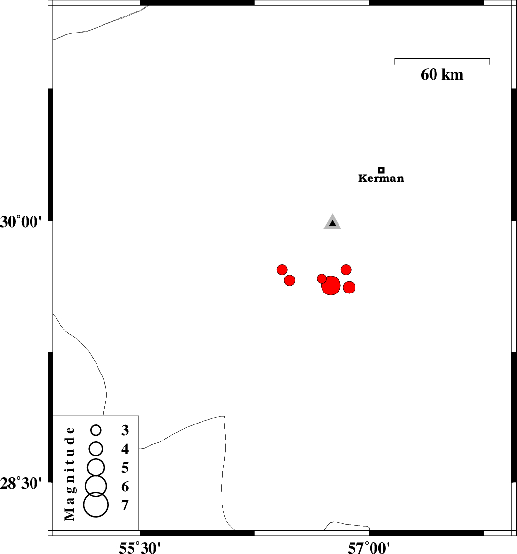 2010/07/31 12:03:57.0 16:33:57.0 29.7256.8543 ML3 Kerman Province, 35 km South-East of Bardsir