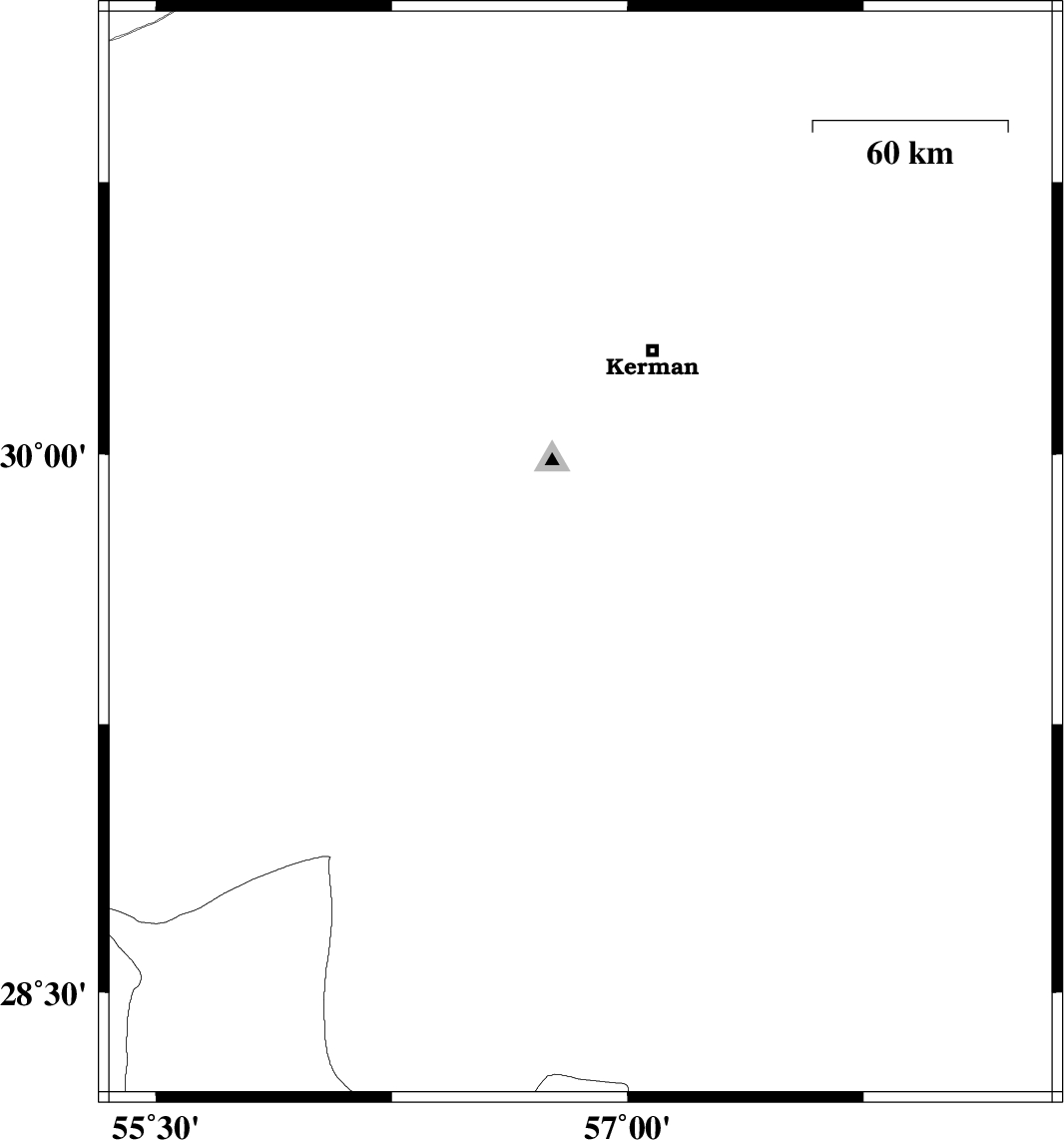 | 2010/07/31 | 09:34:19.3 | 14:04:19.3 | 29.72 | 56.43 | 15 | ML3 | Kerman Province, 26 km South-West of Bardsir | ||