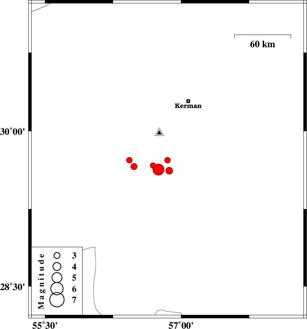 2010/07/31 12:03:57.0 16:33:57.0 29.7256.8543 ML3 Kerman Province, 35 km South-East of Bardsir