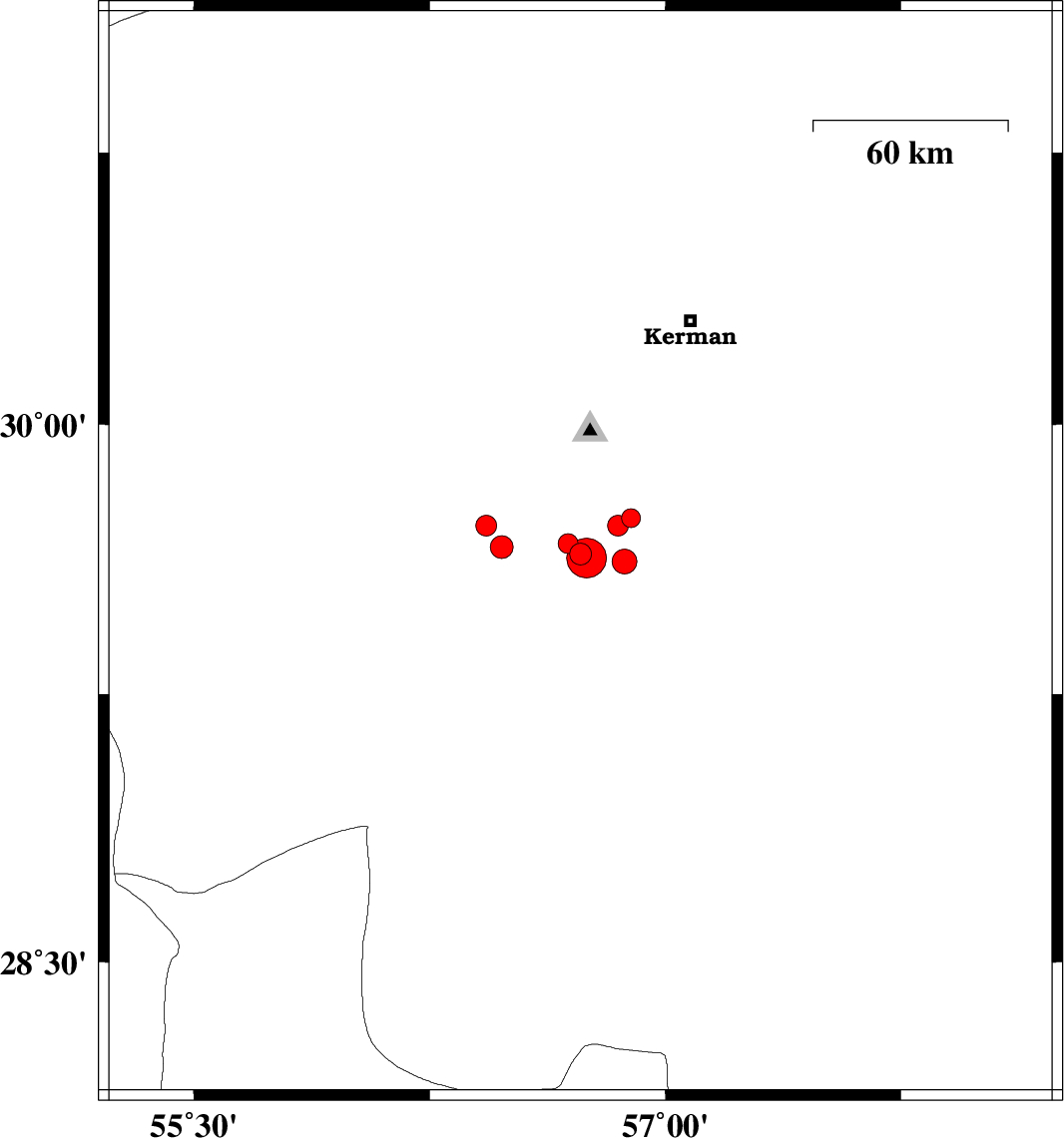 | 2010/07/31 | 12:03:57.0 | 16:33:57.0 | 29.72 | 56.85 | 43 | ML3 | Kerman Province, 35 km South-East of Bardsir | ||