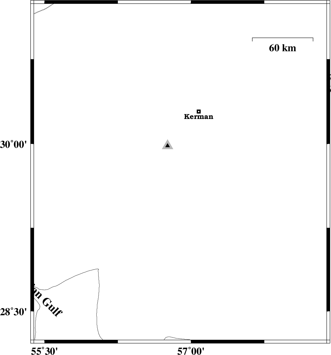 | 2010/07/31 | 13:18:47.1 | 17:48:47.1 | 29.66 | 56.48 | 18 | ML3.2 | Kerman Province, 30 km South of Bardsir | ||