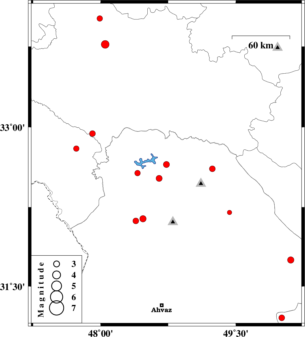 | 2010/07/28 | 11:17:06.2 | 15:47:06.2 | 32.57 | 48.41 | 18 | ML2.8 | Khoozestan Province, 13 km North of Andimeshk | ||
