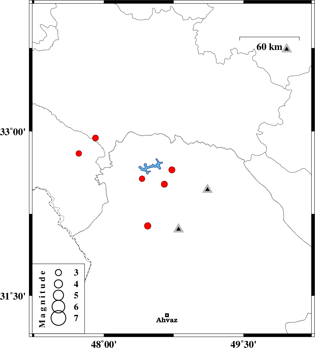 | 2010/07/28 | 11:17:06.2 | 15:47:06.2 | 32.57 | 48.41 | 18 | ML2.8 | Khoozestan Province, 13 km North of Andimeshk | ||