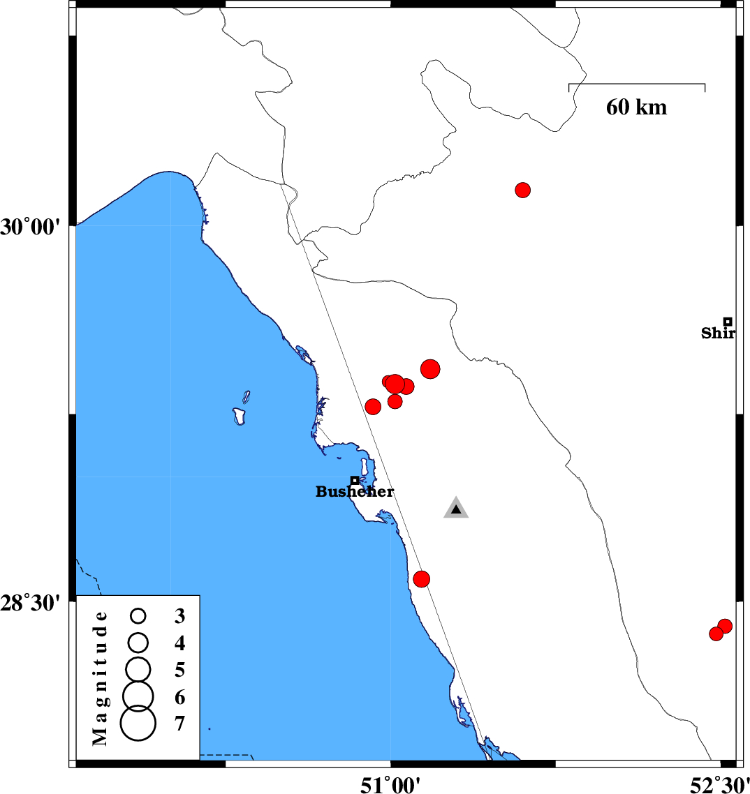 2010/08/06 20:08:31.5 00:38:31.5 29.2850.9240 ML3.3 Bushehr Province, 28 km West of Borazjan