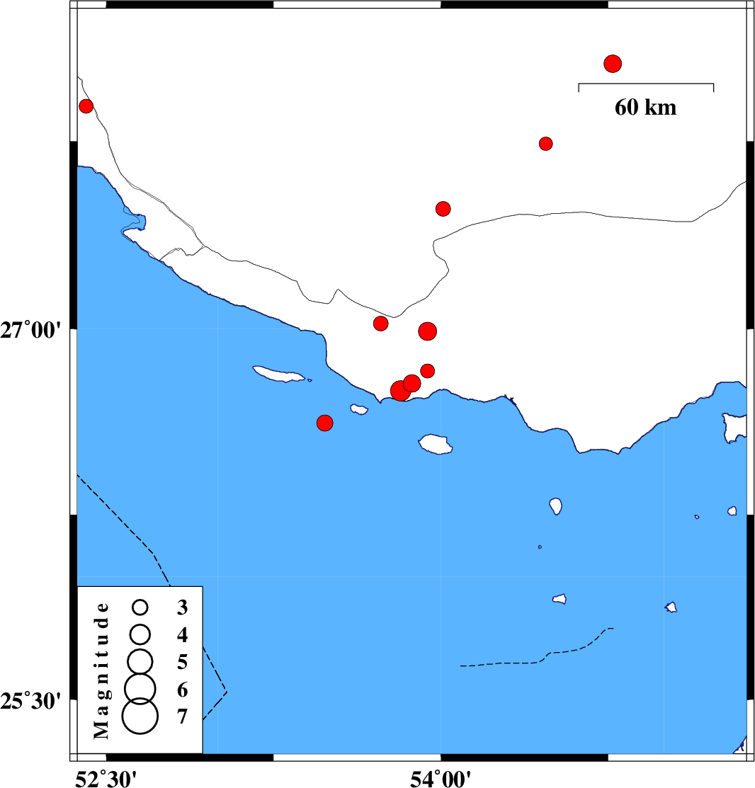 | 2010/08/04 | 07:45:07.9 | 12:15:07.9 | 27.48 | 54.01 | 14 | ML3 | Fars Province, 39 km South-West of Lar | ||