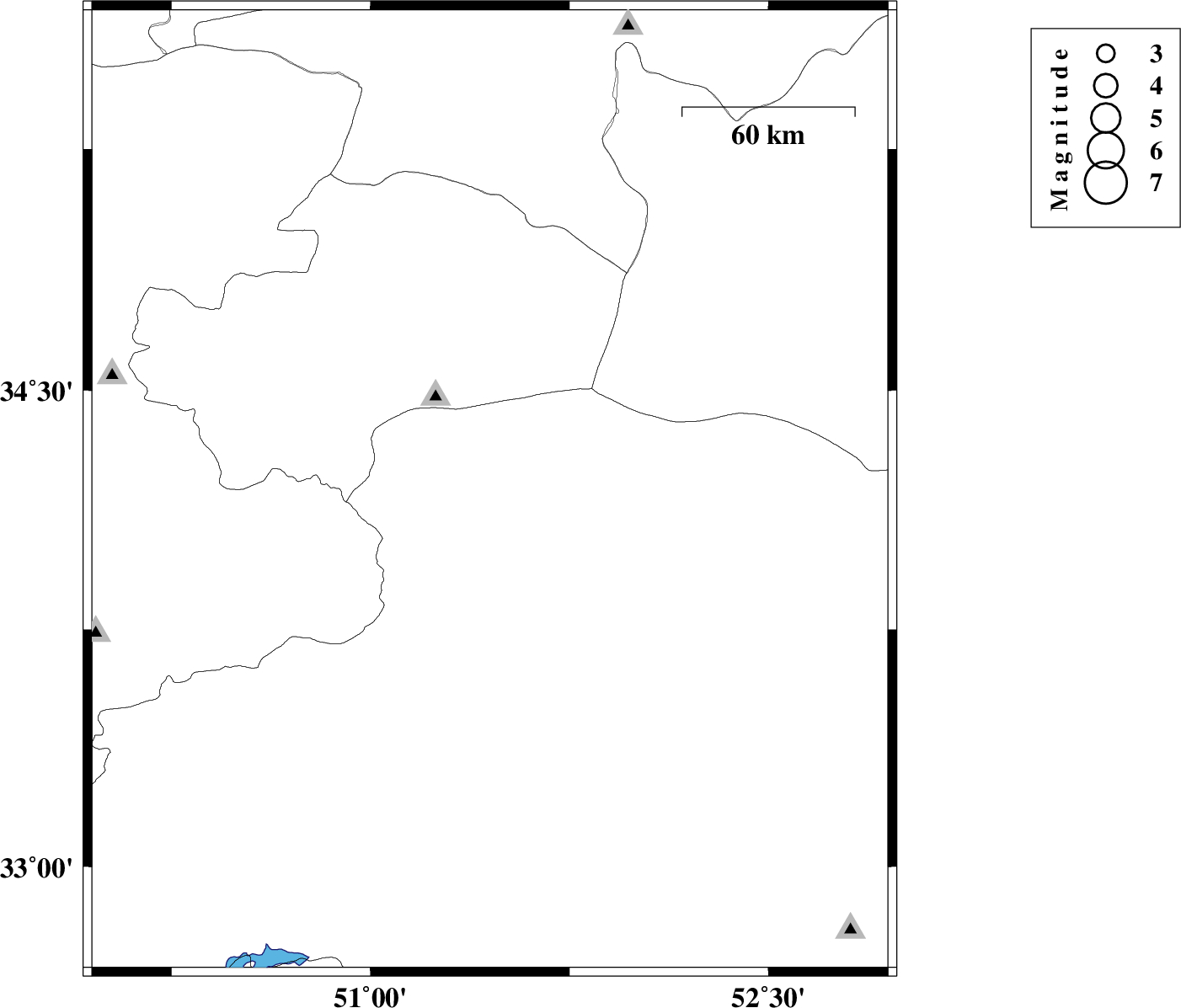 2010/08/23 | 01:33:15.8 | 06:03:15.8 | 34.54 | 52.44 | 44 | ML3.1 | Semnan Province, 76 km South-East of Garmsar | ||