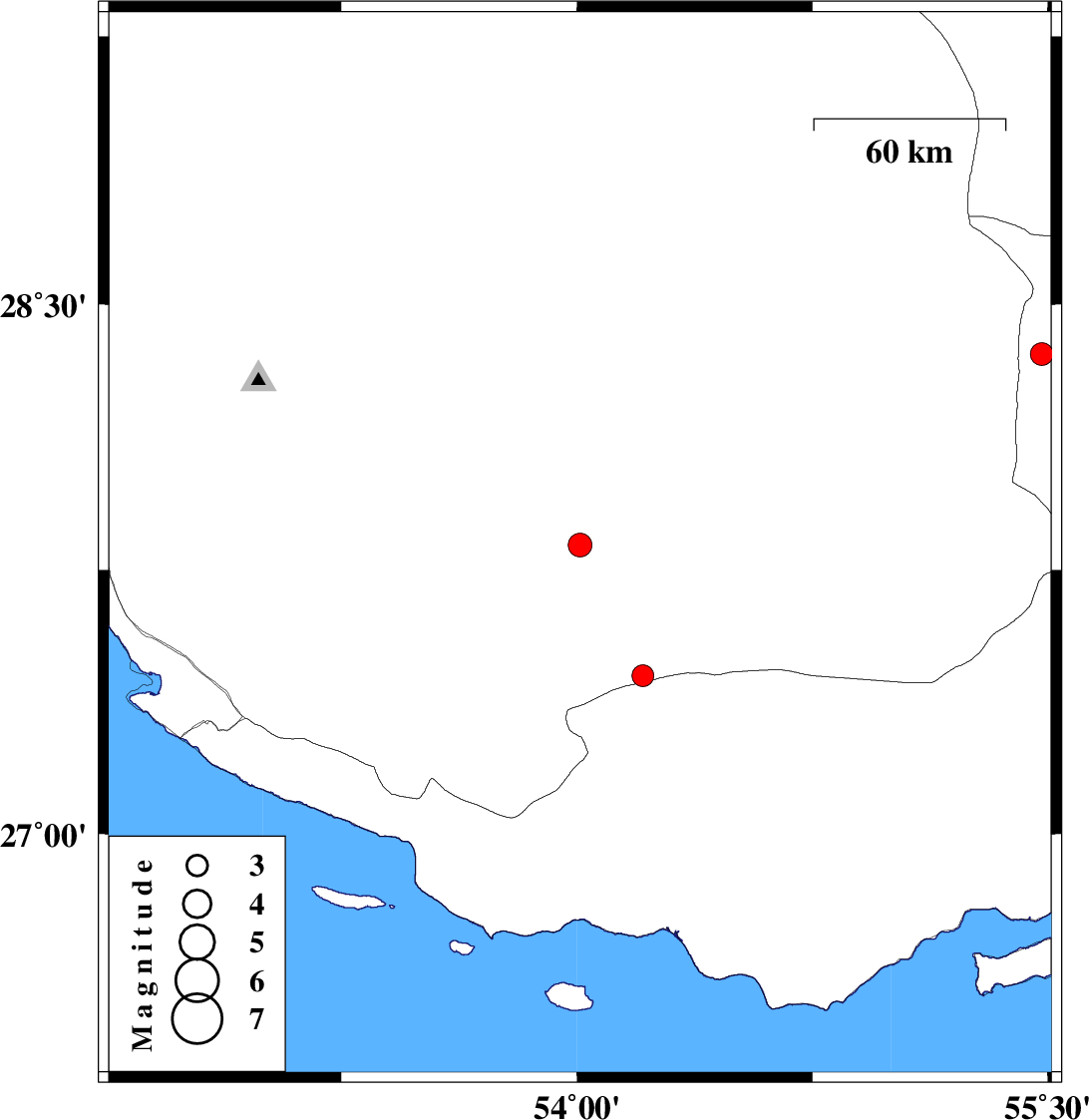 | 2010/08/14 | 13:40:42.1 | 18:10:42.1 | 27.45 | 54.21 | 14 | ML3.1 | Fars Province, 29 km South-West of Lar |