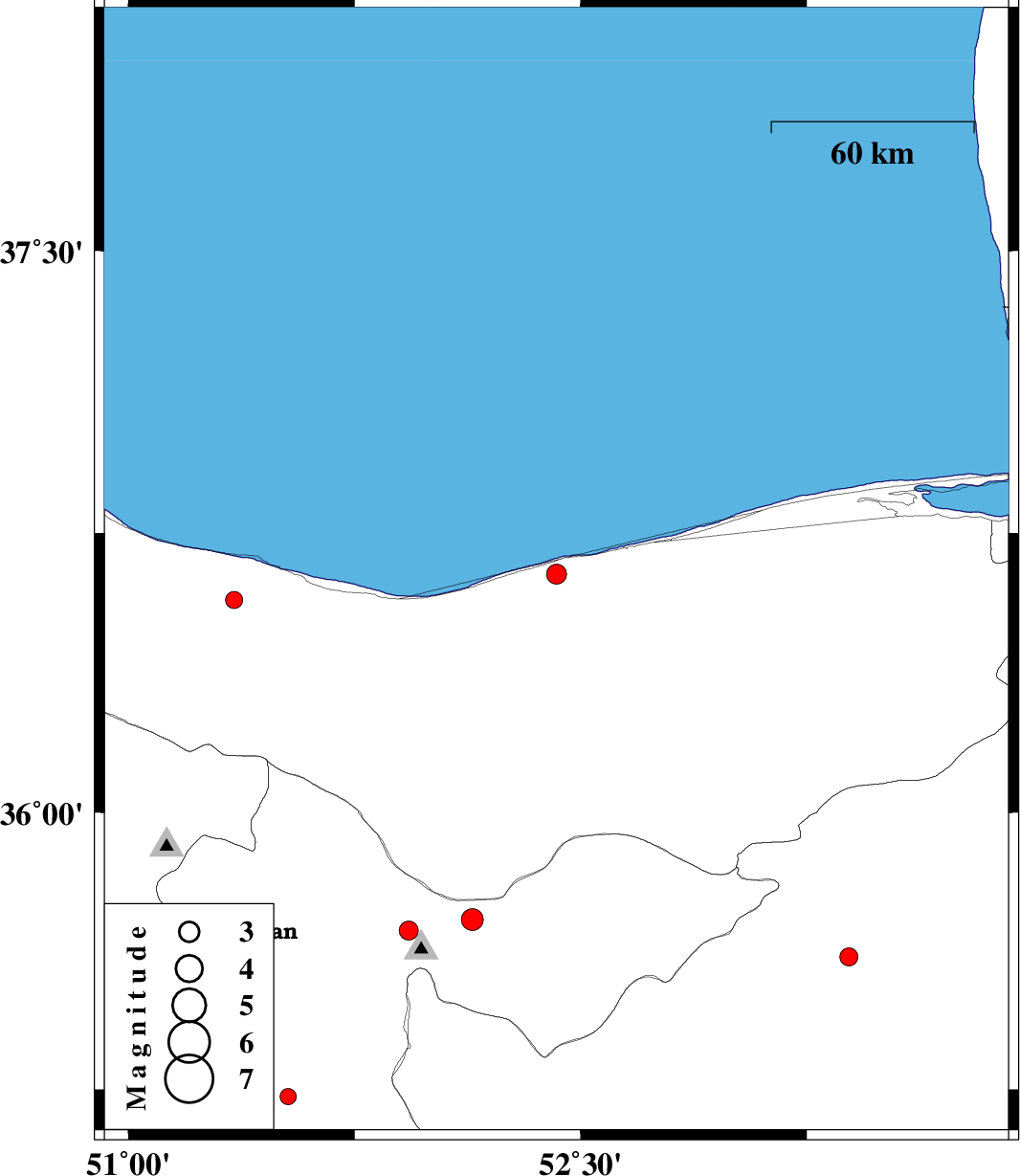 2010/08/13 | 04:09:35.2 | 08:39:35.2 | 36.57 | 51.35 | 14 | ML:2.6 | Mazandaran Province, 11 km Chalus | ||
