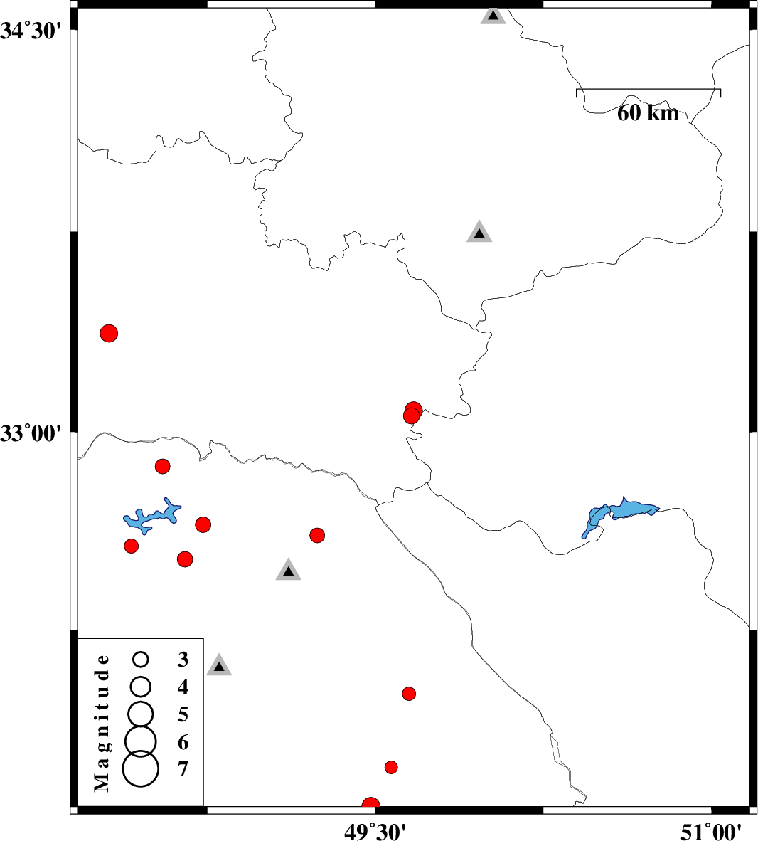 | 2010/08/09 | 19:49:24.9 | 00:19:24.9 | 33.37 | 48.31 | 44 | ML3.5 | Lorestan Province, 14 km South of Khorramabad | ||