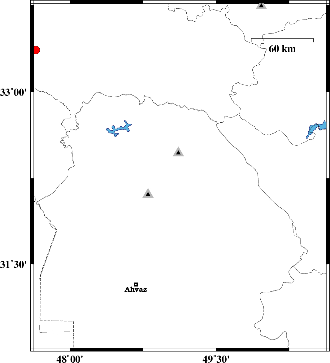 | 2010/07/28 | 11:17:06.2 | 15:47:06.2 | 32.57 | 48.41 | 18 | ML2.8 | Khoozestan Province, 13 km North of Andimeshk | ||