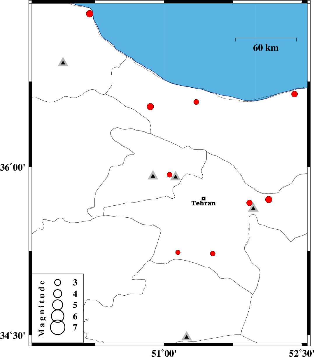 2010/08/21 | 19:41:17.7 | 00:11:17.7 | 35.93 | 51.06 | 14 | ML:2.6 | Tehran Province, 17 km North-East of Karaj | ||