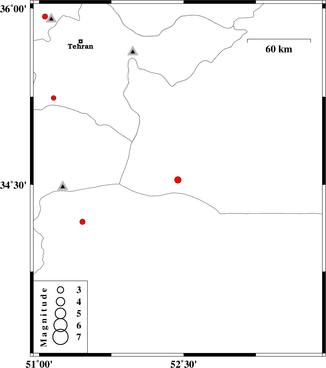 2010/08/23 | 01:33:15.8 | 06:03:15.8 | 34.54 | 52.44 | 44 | ML3.1 | Semnan Province, 76 km South-East of Garmsar | ||