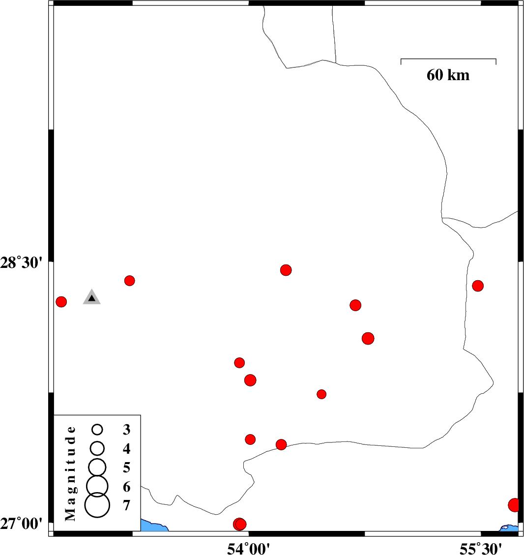 | 2010/08/04 | 07:45:07.9 | 12:15:07.9 | 27.48 | 54.01 | 14 | ML3 | Fars Province, 39 km South-West of Lar |