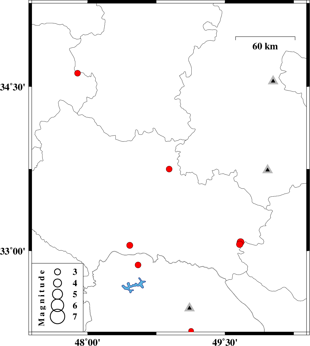 | 2010/09/09 | 02:30:18.5 | 07:00:18.5 | 33.75 | 48.89 | 6 | ML2.9 | Lorestan Province, 21 km South-East of Borujerd | ||