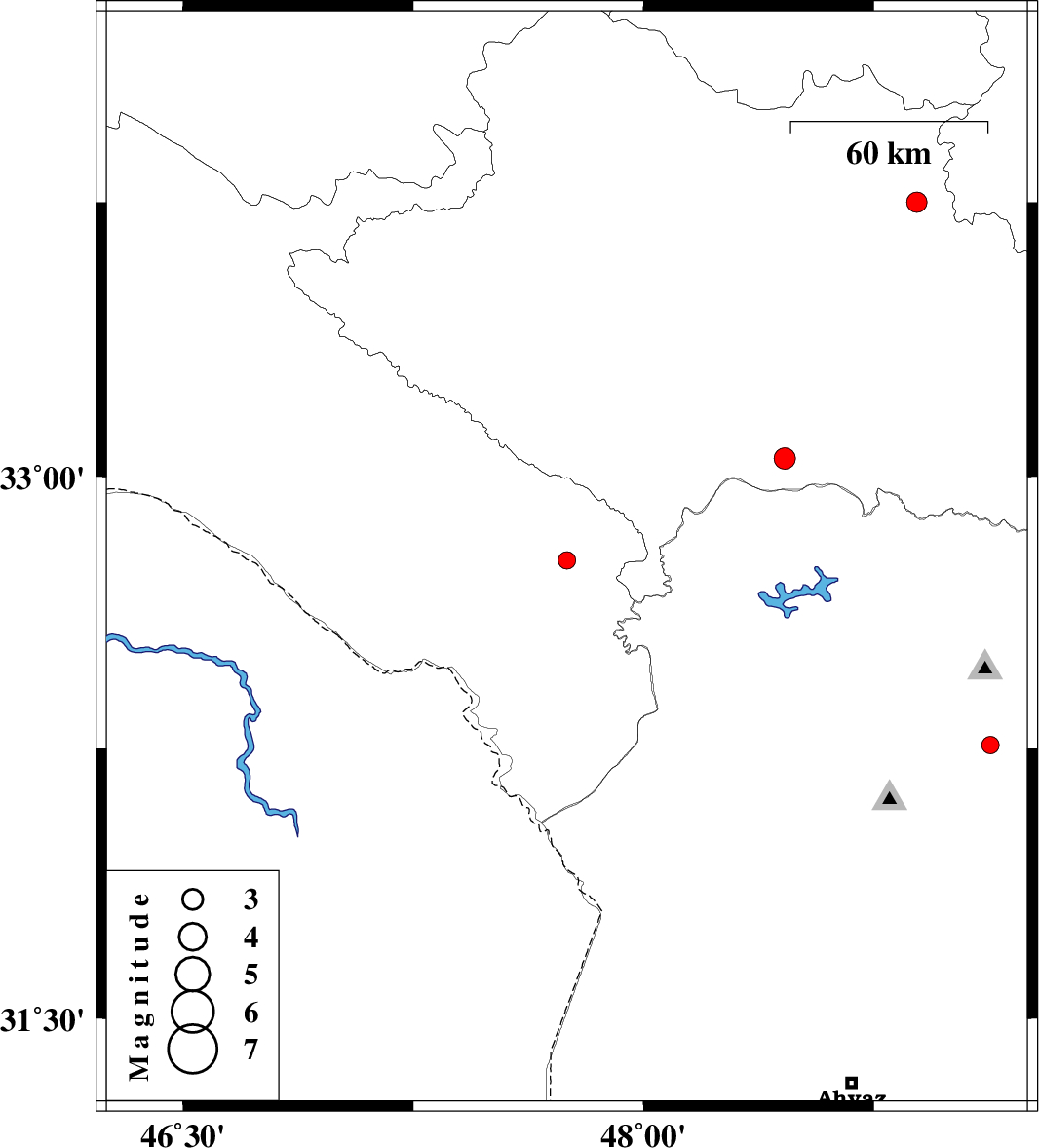 | 2010/08/21 | 01:50:30.1 | 06:20:30.1 | 32.26 | 49.13 | 14 | ML2.5 | Khoozestan Province, 14 km South of Lali |