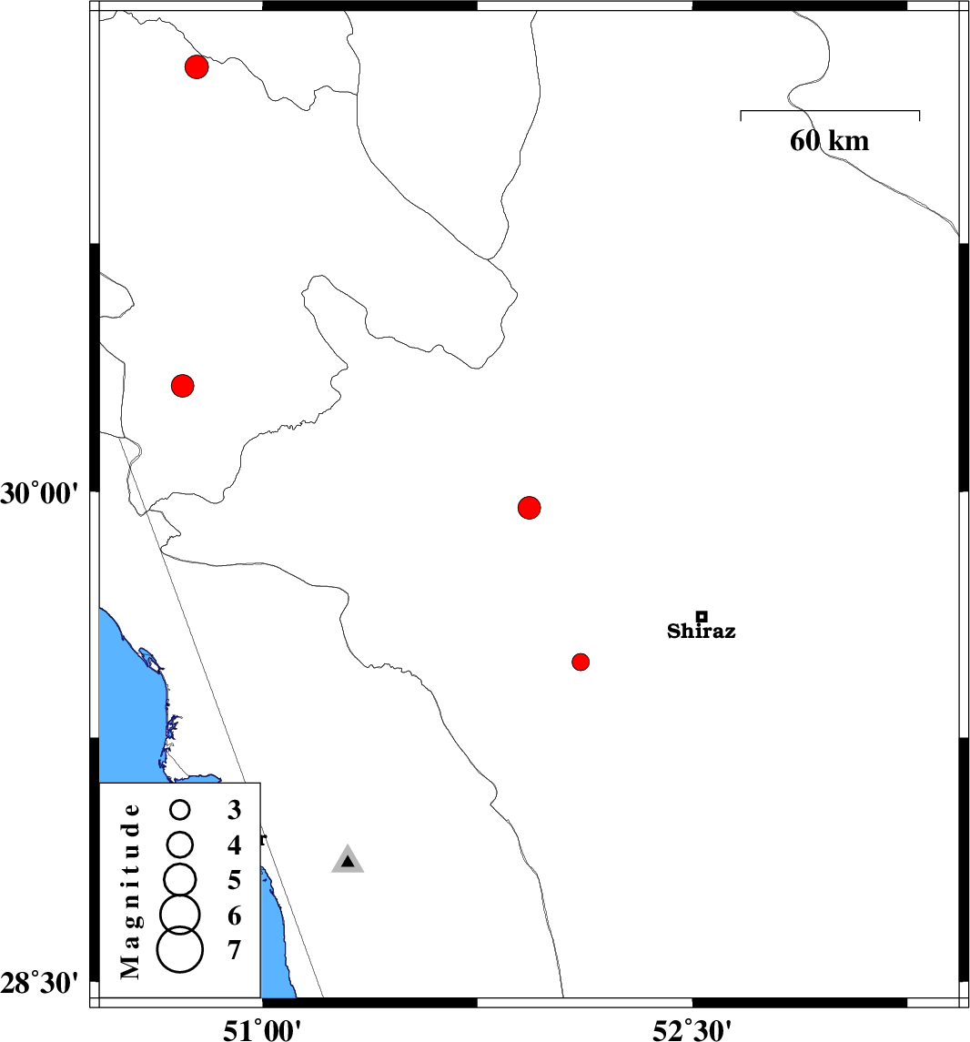 | 2010/09/18 | 07:49:18.1 | 12:19:18.1 | 29.48 | 52.11 | 14 | ML2.7 | Fars Province, 44 km South-West of Shiraz | ||