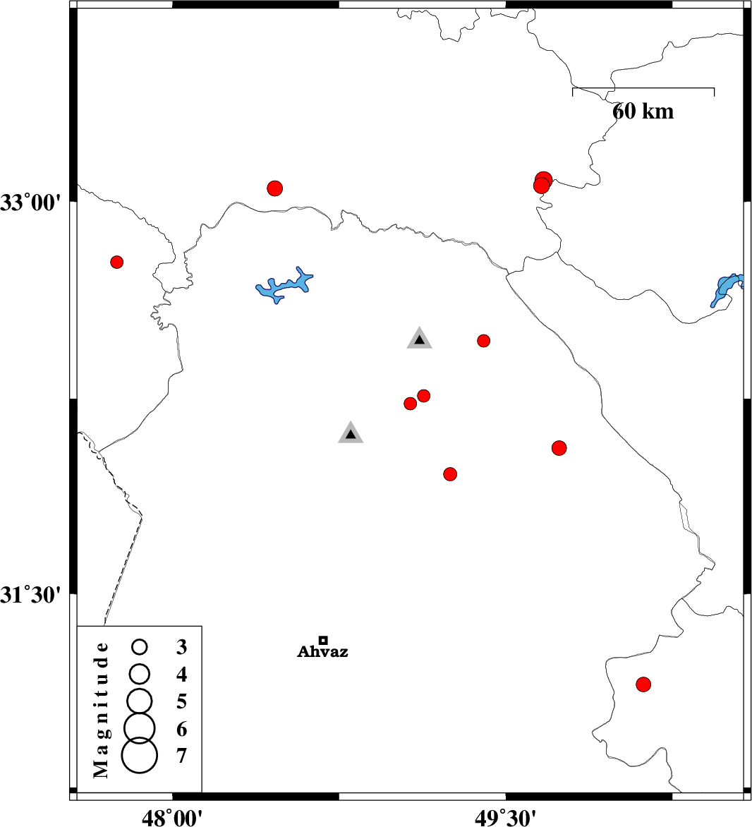 | 2010/08/21 | 01:50:30.1 | 06:20:30.1 | 32.26 | 49.13 | 14 | ML2.5 | Khoozestan Province, 14 km South of Lali | ||