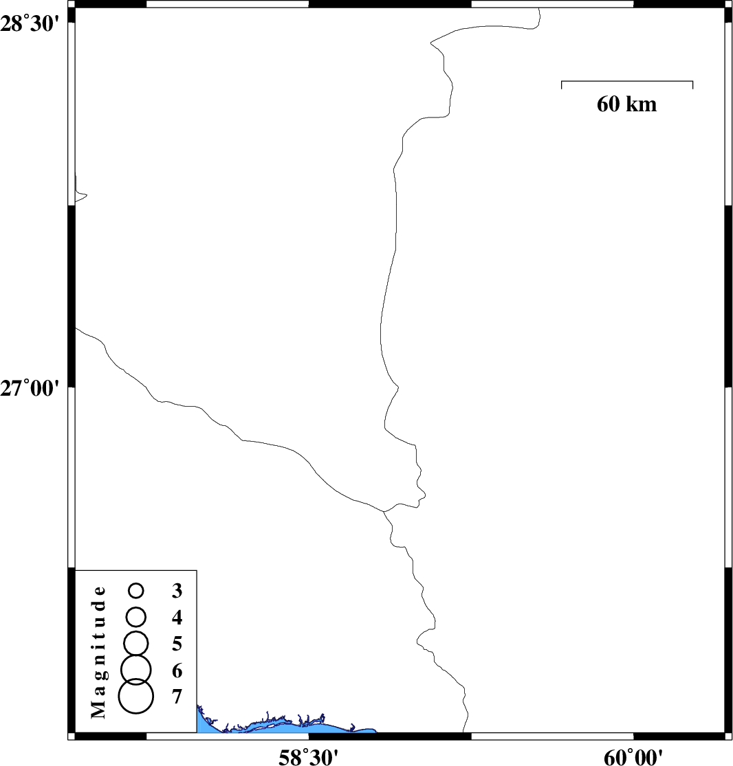 | 2010/09/20 | 02:55:00.5 | 07:25:00.5 | 27.06 | 58.92 | 15 | ML3.3 | Sistan va Baloochestan Province, 146 km South-East of Manujan |