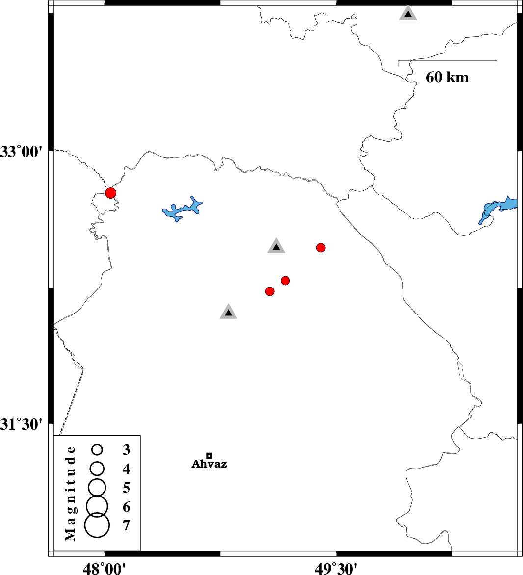 | 2010/09/21 | 23:47:31.3 | 03:17:31.3 | 32.77 | 48.04 | 14 | ML3.1 | Lorestan Province, 45 km North-West of Andimeshk | ||