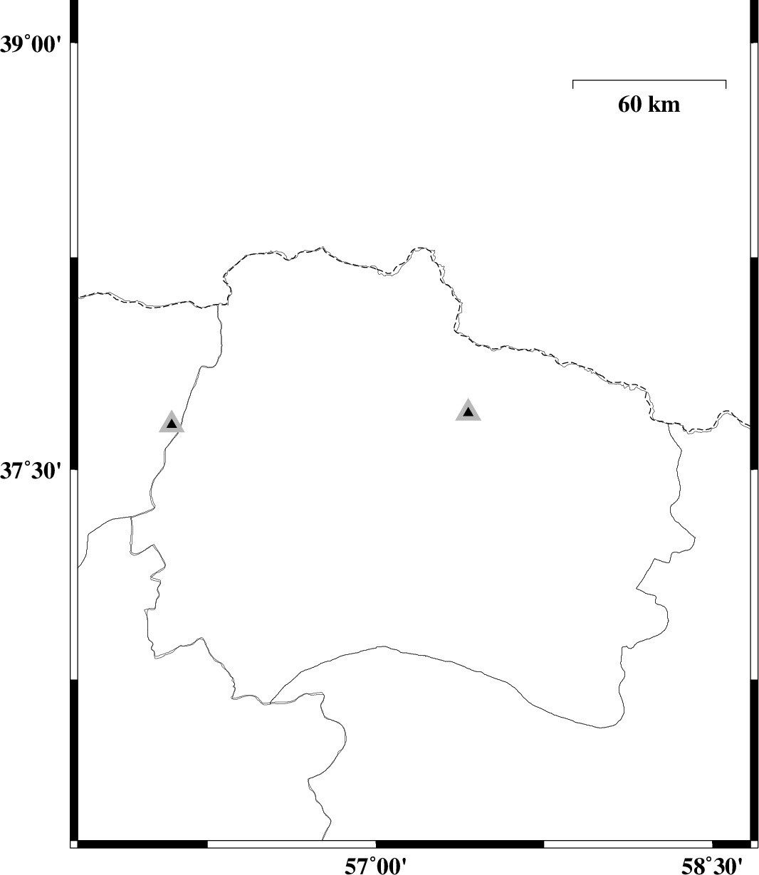 2010/09/23 | 13:59:44.8 | 17:29:44.8 | 37.77 | 57.42 | 14 | ML2.9 | Khorasan(north) Province, 34 km North of Bojnurd |