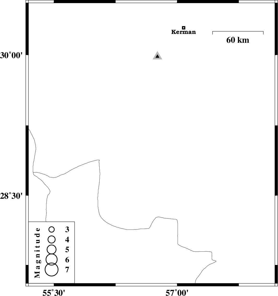 | 2010/09/25 | 19:12:56.8 | 22:42:56.8 | 29.05 | 56.69 | 15 | ML2.8 | Kerman Province, 22 km South of Baft |