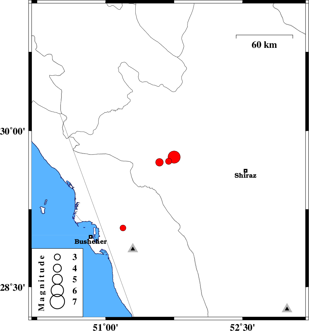 2010/09/27 15:05:48.3 18:35:48.3 29.751.5942 ML3.8 Fars Province, 11 km Kazerun