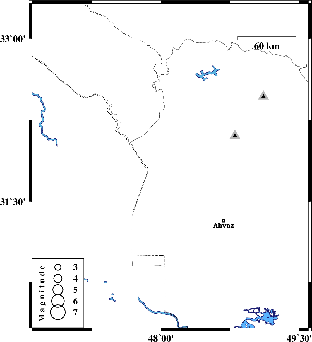 | 2010/10/01 | 02:12:46.6 | 05:42:46.6 | 31.82 | 48.1 | 16 | ML3.1 | Khoozestan Province, 31 km North of Susangerd |