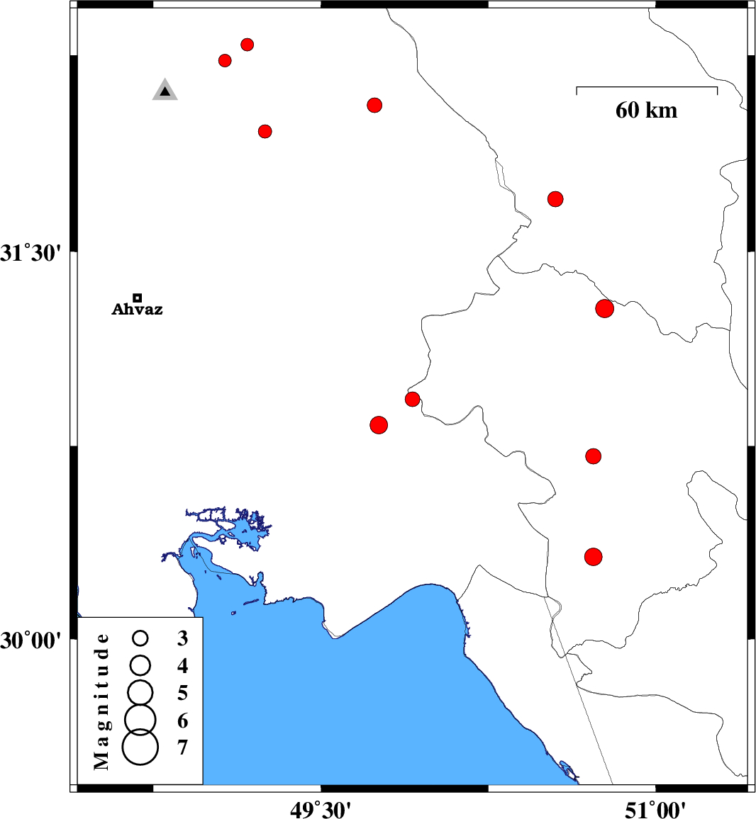 | 2010/10/02 | 19:04:44.0 | 22:34:44.0 | 30.93 | 49.91 | 33 | ML2.9 | Khoozestan Province, 27 km North-East of Omidiyeh | ||
