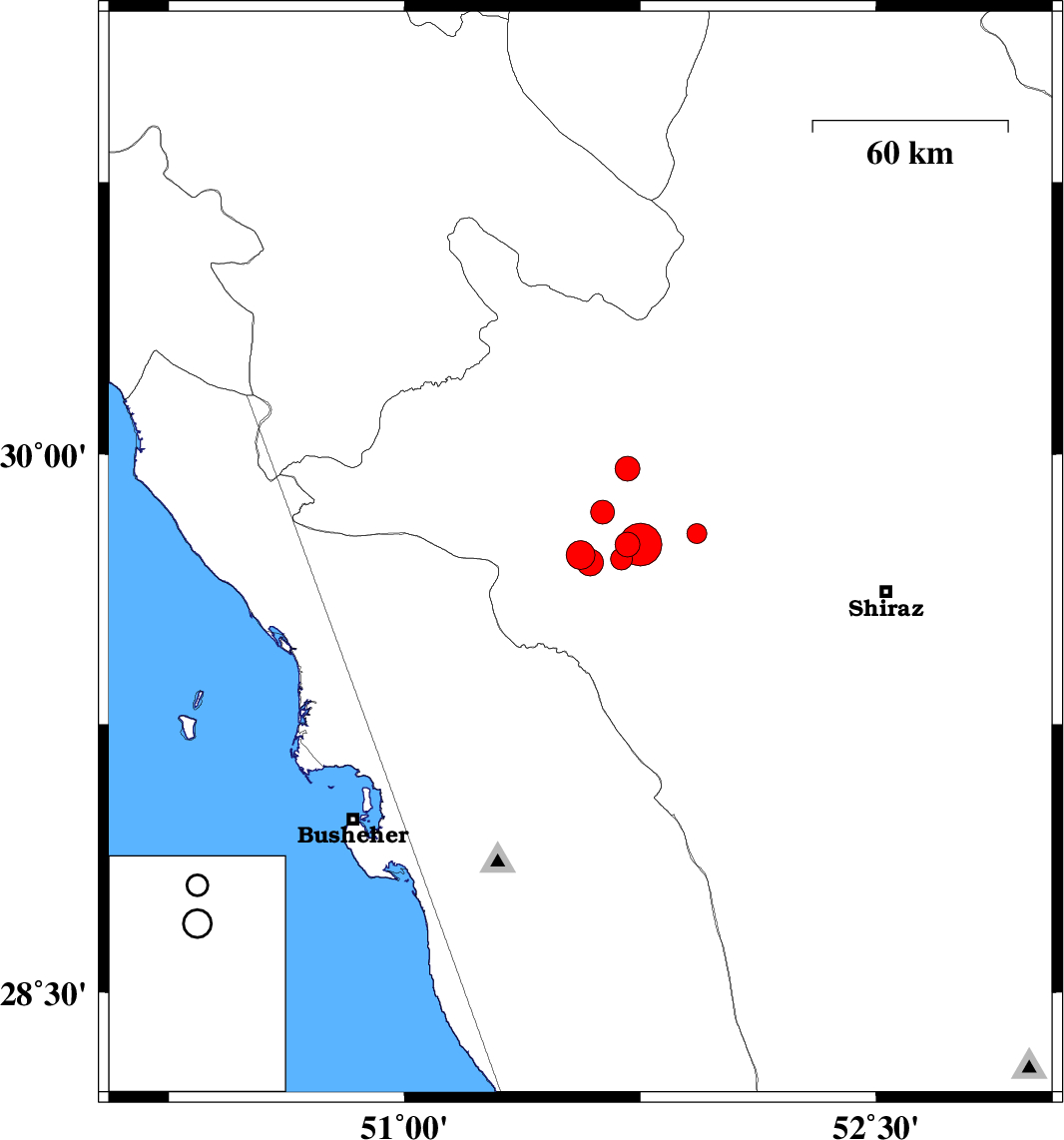 2010/09/27 15:05:48.3 18:35:48.3 29.751.5942 ML3.8 Fars Province, 11 km Kazerun