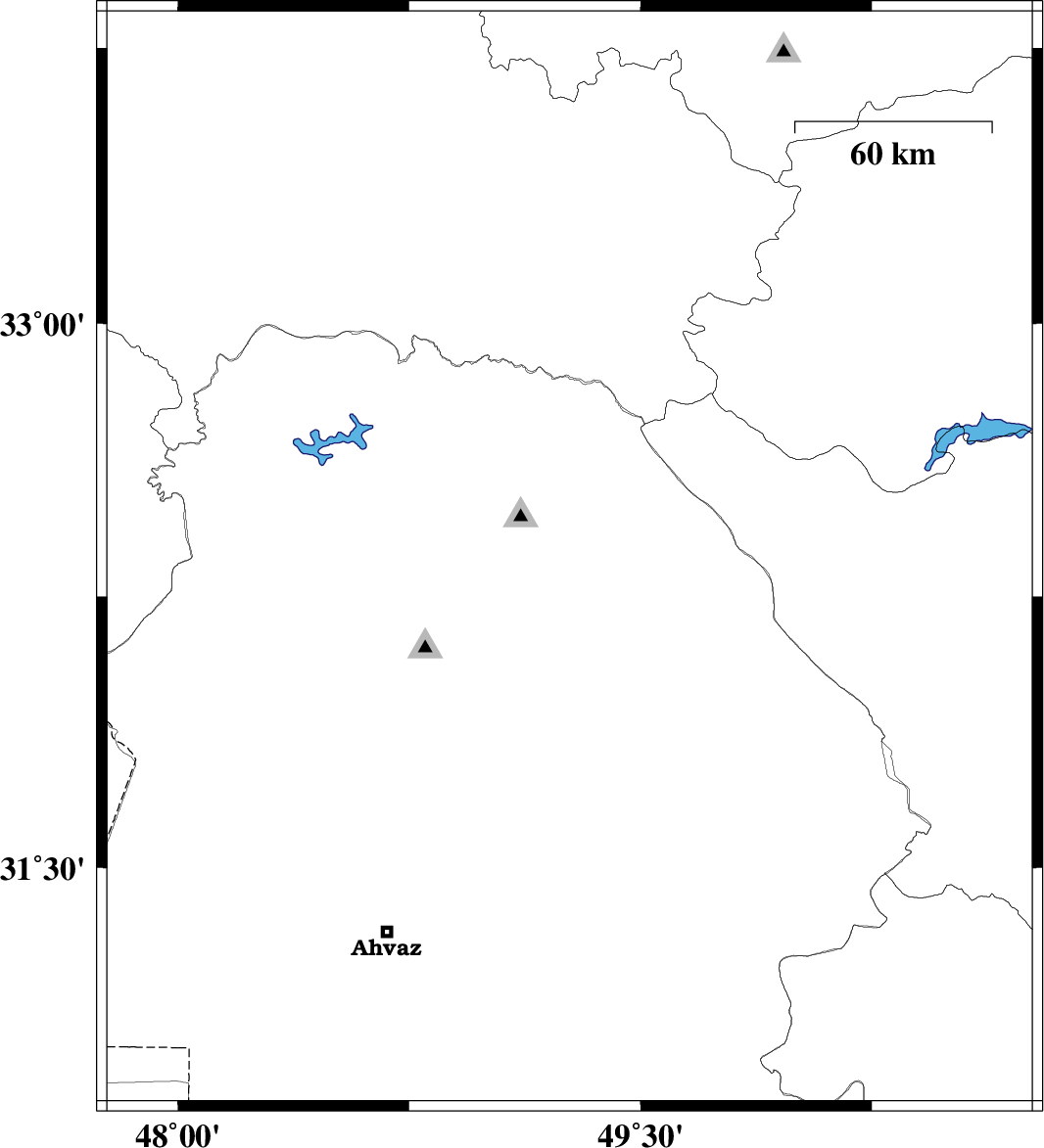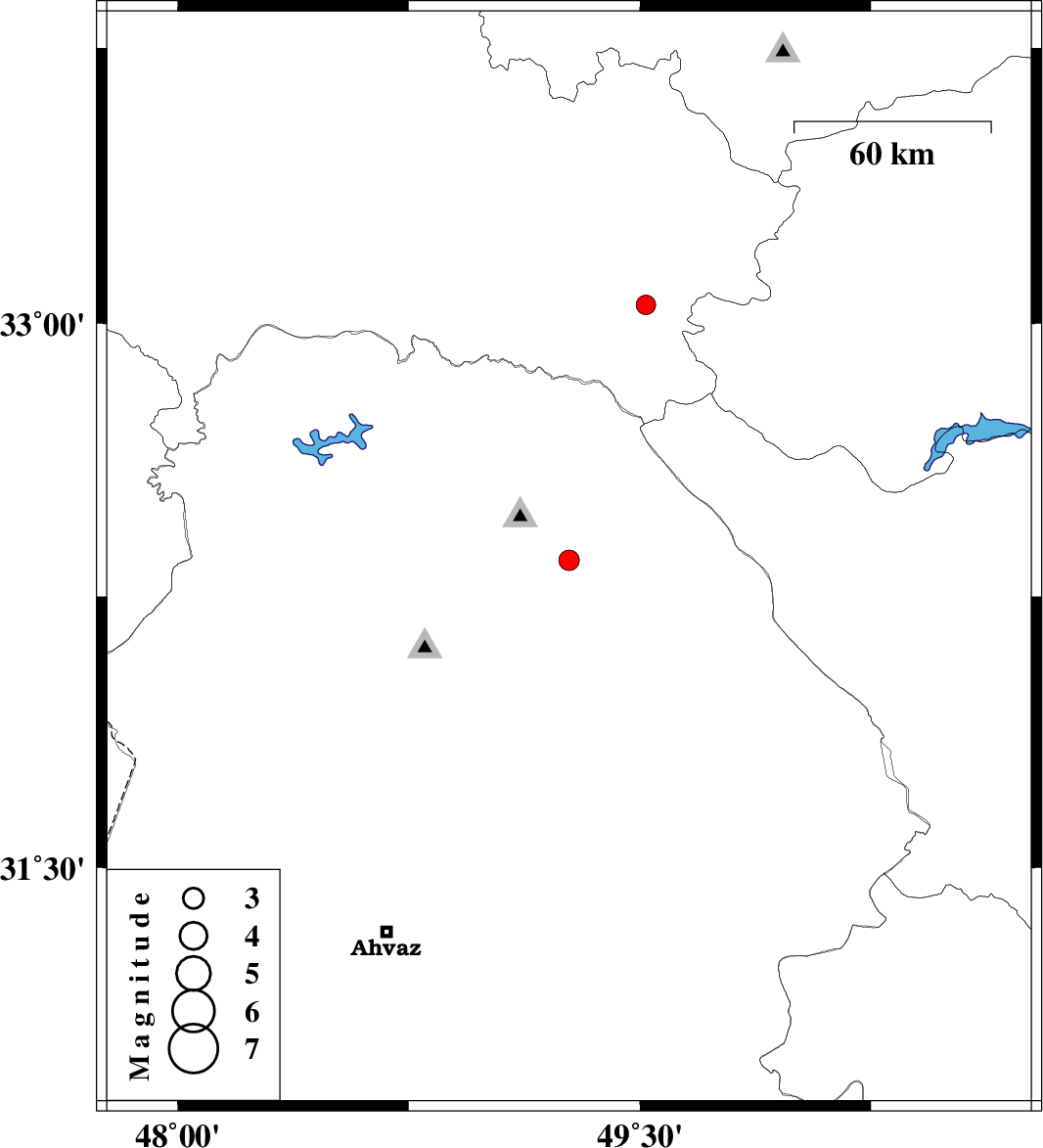 | 2010/10/06 | 07:54:04.1 | 11:24:04.1 | 33.05 | 49.52 | 17 | ML2.8 | Lorestan Province, 46 km South of Azna |