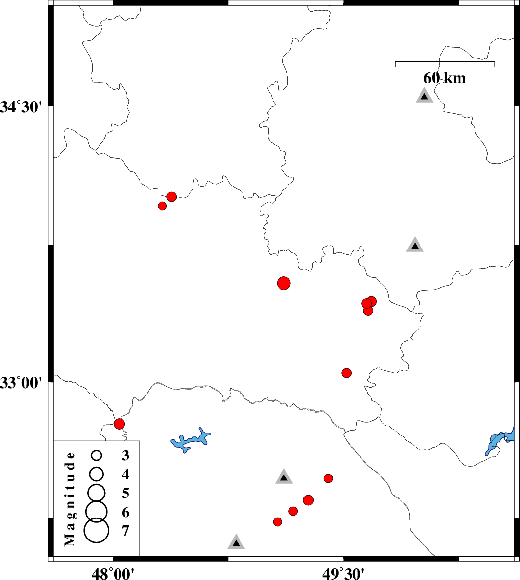 | 2010/10/13 | 02:34:59.4 | 06:04:59.4 | 33.44 | 49.68 | 6 | ML2.9 | Lorestan Province, 4 km Aligudarz | ||