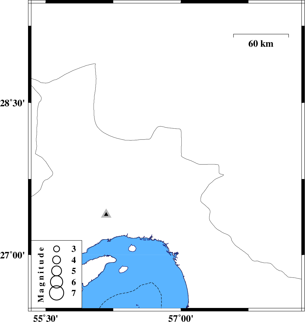 | 2010/10/17 | 16:06:56.6 | 19:36:56.6 | 27.97 | 56.84 | 17 | ML3.3 | Hormozgan Province, 84 km West of Kahnuj |
