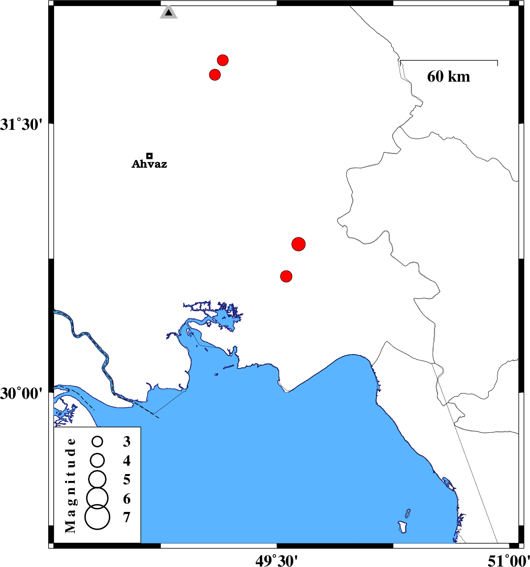 | 2010/10/19 | 13:42:41.8 | 17:12:41.8 | 30.83 | 49.64 | 18 | ML4 | Khoozestan Province, 10 km Omidiyeh | ||
