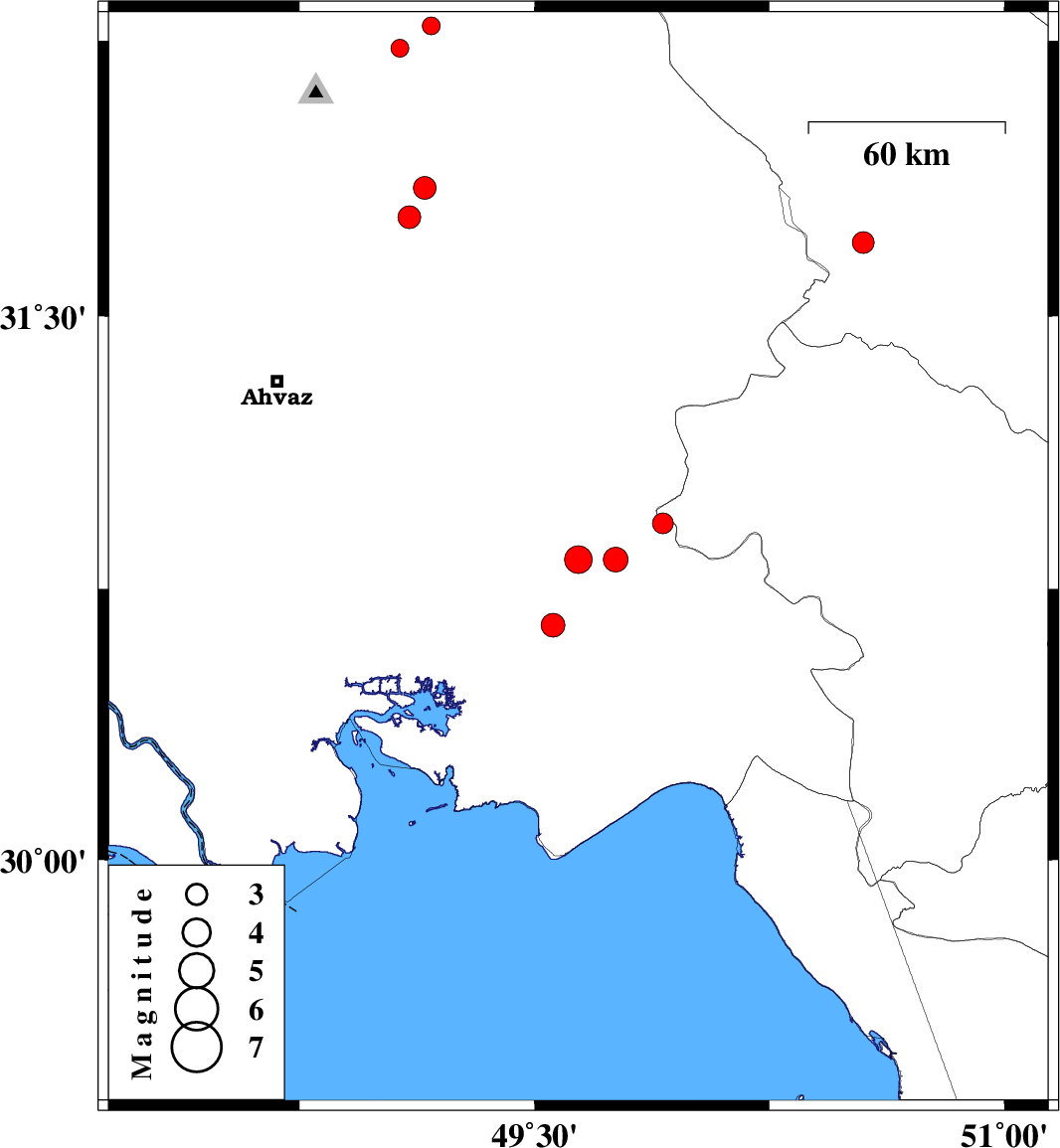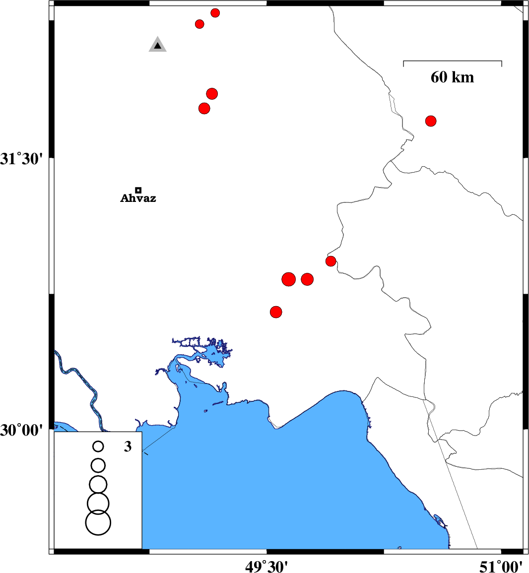 | 2010/10/02 | 19:04:44.0 | 22:34:44.0 | 30.93 | 49.91 | 33 | ML2.9 | Khoozestan Province, 27 km North-East of Omidiyeh | ||