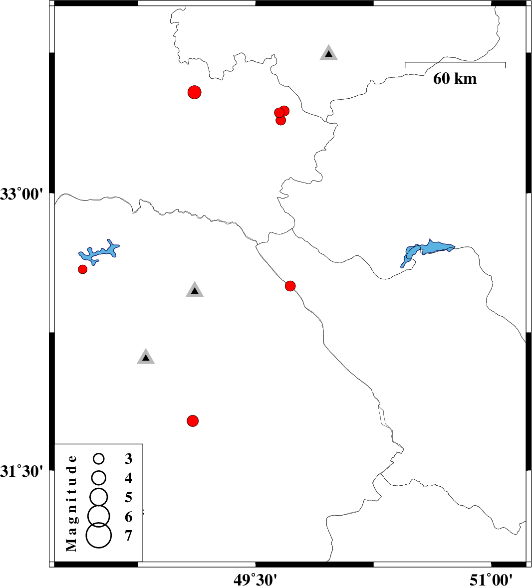 | 2010/10/13 | 02:34:59.4 | 06:04:59.4 | 33.44 | 49.68 | 6 | ML2.9 | Lorestan Province, 4 km Aligudarz | ||