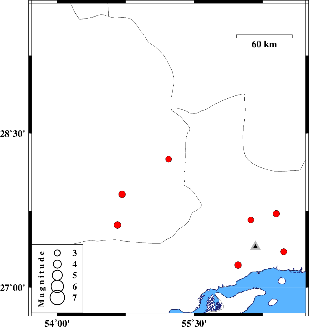 | 2010/10/28 | 13:56:11.7 | 17:26:11.7 | 27.22 | 55.98 | 7 | ML3.4 | Hormozgan Province, 30 km West of Bandar-e abbas | ||