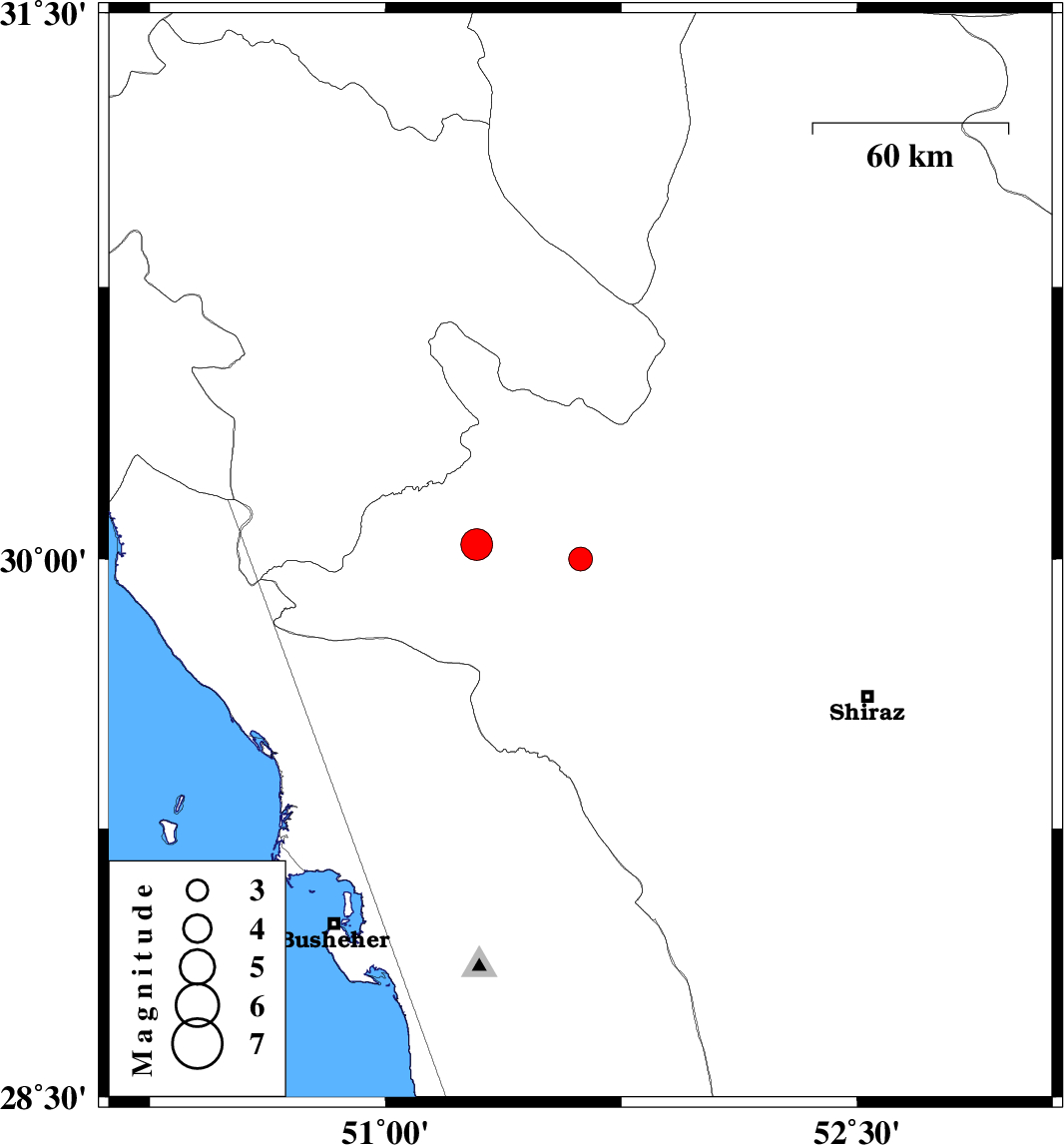 | 2010/10/28 | 09:22:22.4 | 12:52:22.4 | 30.04 | 51.29 | 17 | ML4.5 | Fars Province, 24 km West of Nurabad |