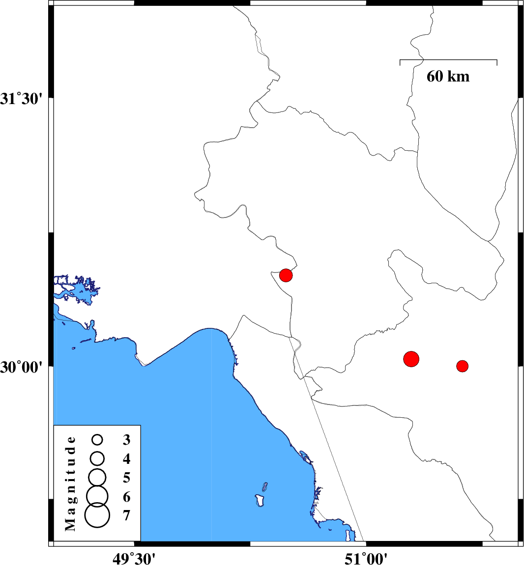 | 2010/10/31 | 02:09:37.8 | 05:39:37.8 | 30.51 | 50.48 | 39 | ML3.8 | Kohkiluieh va boyerahmad Province, 24 km East of Behbahan | ||