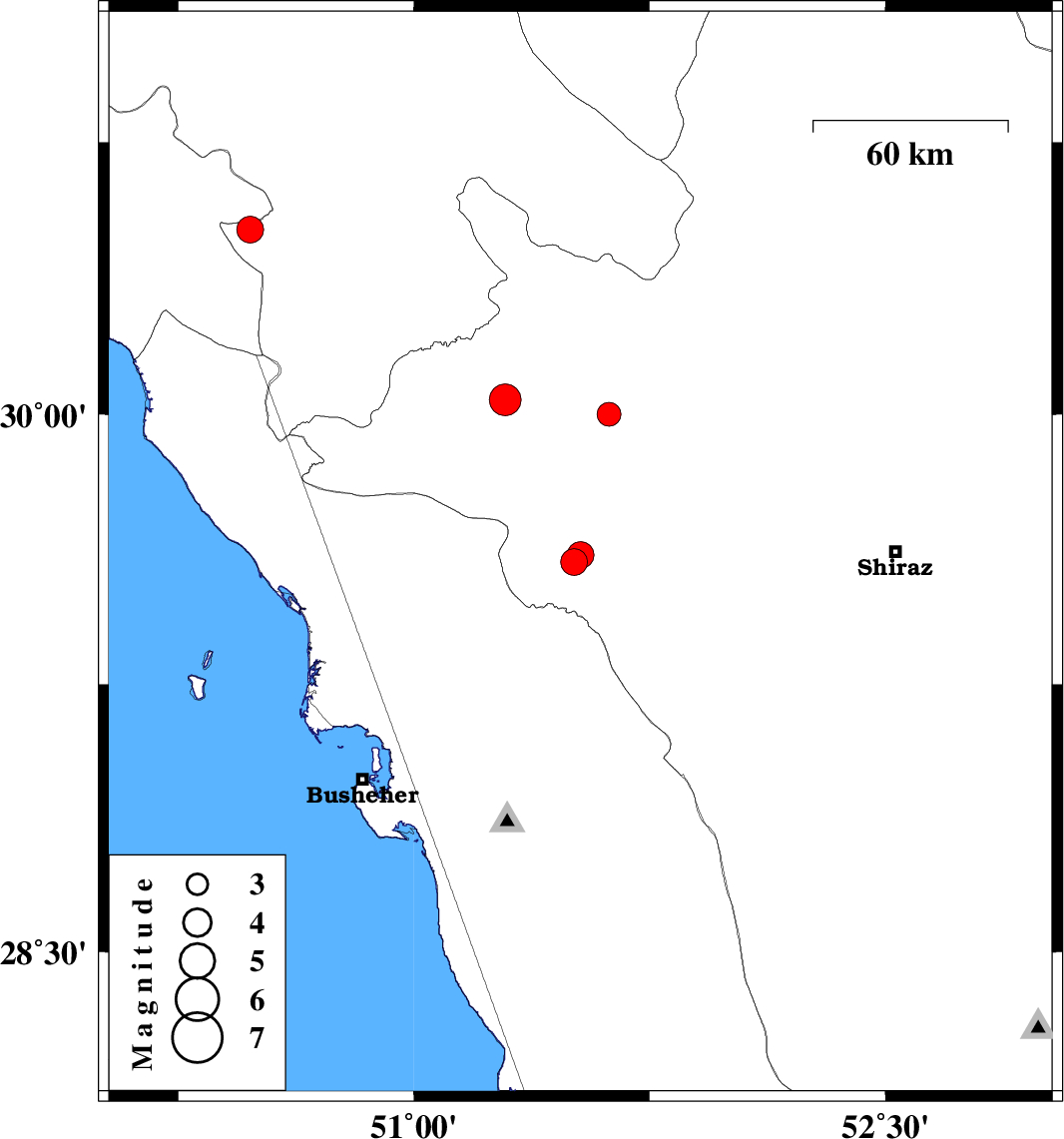 | 2010/10/28 | 09:22:22.4 | 12:52:22.4 | 30.04 | 51.29 | 17 | ML4.5 | Fars Province, 24 km West of Nurabad |