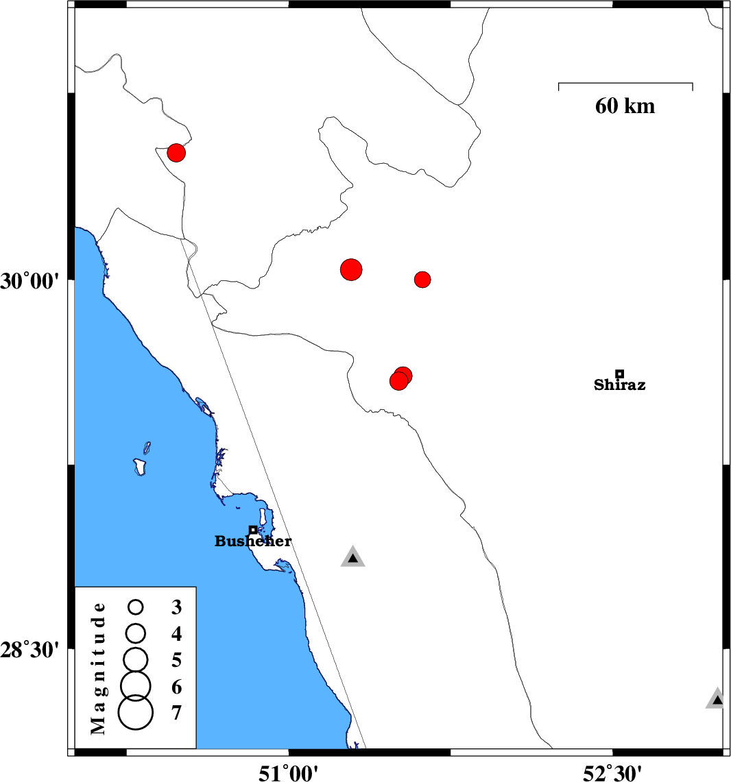 2010/10/28 11:13:34.1 14:43:34.1 3051.6214 ML3.4 Fars Province, 15 km South of Nurabad
